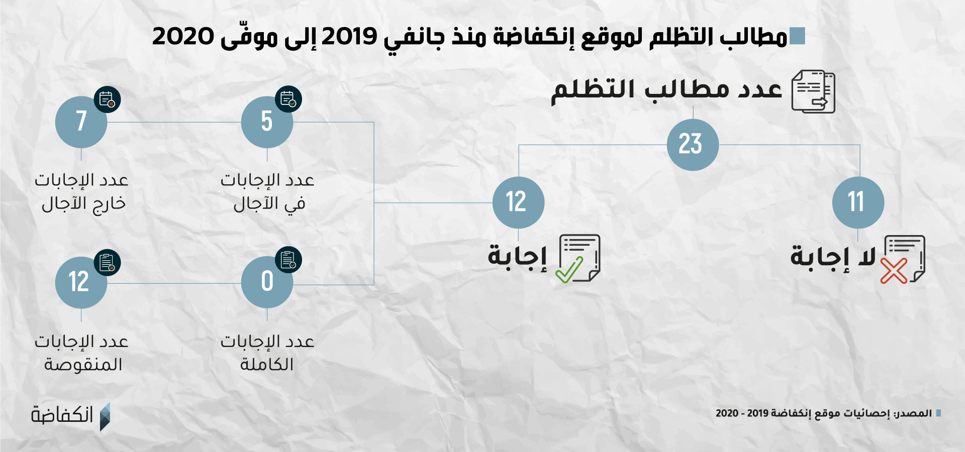 كانت إنكفاضة قد تقدمت منذ جانفي 2019 وإلى نهاية سنة 2020 بــ13 دعوى لدى هيئة النفاذ إلى المعلومة، إلّا أنّها لم تتلق بخصوص هذه الدعاوى أية إجابات في المدة التي يضبطها القانون.