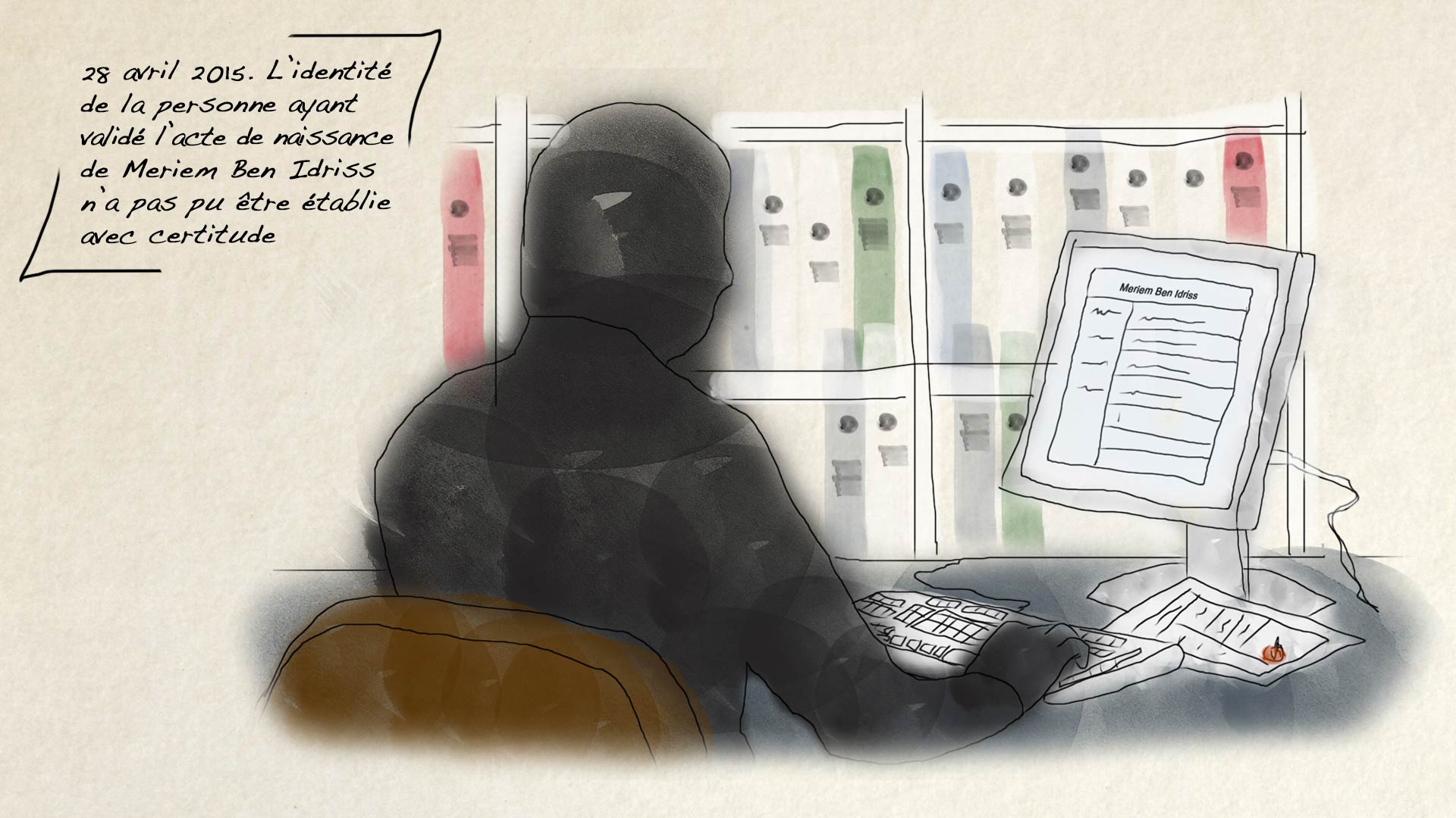 En mars 2015, Karim revient à la charge. Il demande pourquoi il ne parvient pas à trouver dans le système centralisé une certaine Meriem Ben Idriss, née en 1986 et enregistrée à Bab Souika. Mourad lui promet de s’en informer.