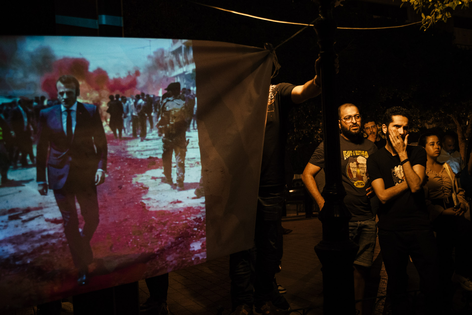 عُرِضت صور مركّبة لإيمانويل ماكرون خلال عرض أفلام في الفضاء العامّ، من تنظيم شباب حركة "سينما المقاومة" احتجاجا على الموقف الفرنسي المساند لإسرائيل.