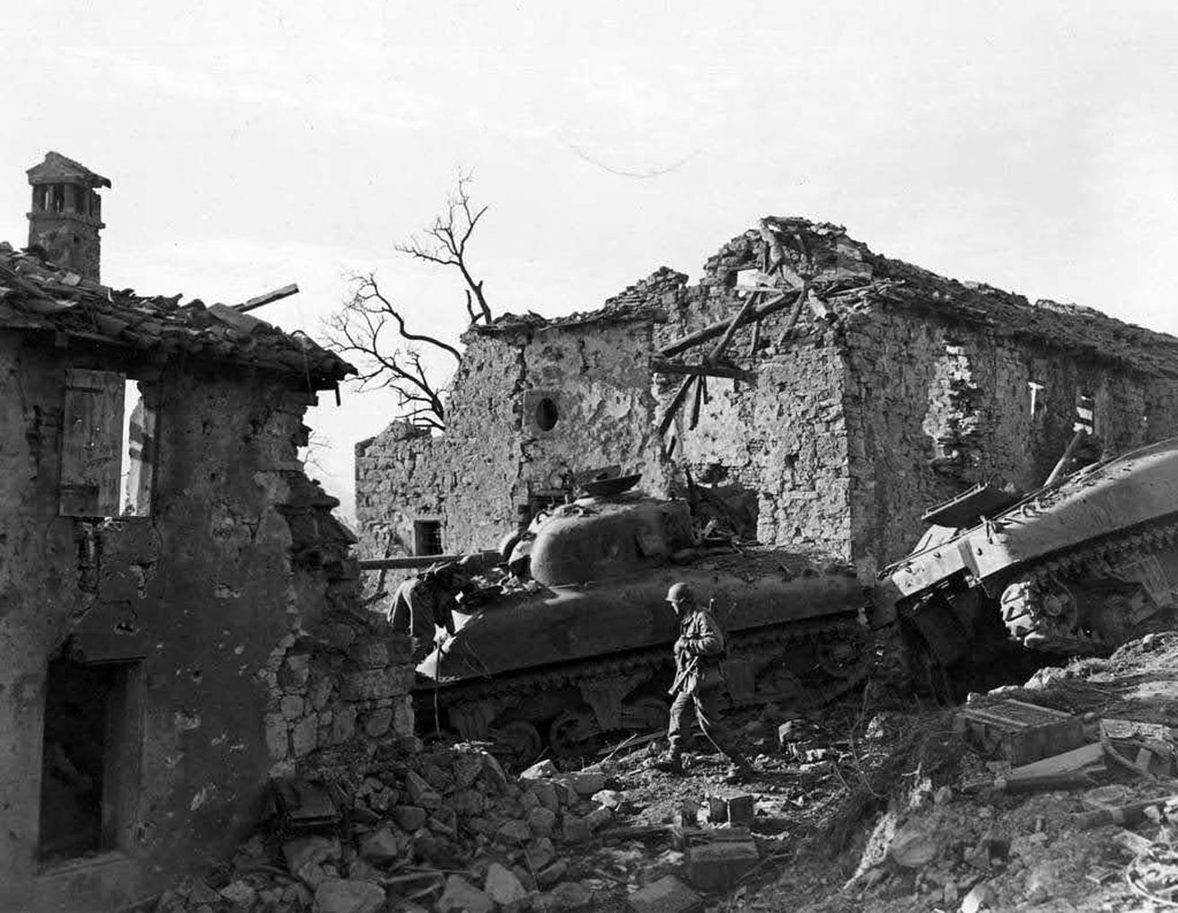 قاتل الفوج الرابع من المشاة التونسيين جنبا إلى جنب مع القوات الأمريكية والبريطانية إضافة إلى وحدات استعمارية أخرى، كثير منها كان من المشاة الشمال أفارقة. يوضح كريستوف جوديس أن "الطبيعة الجغرافية للمعارك كانت صعبة للغاية، فالتضاريس وعرة والمقاومة الألمانية شرسة واستعادة إيطاليا كانت بطيئة جدًا". وفي جانفي/يناير 1944، أودت معركة ممرّ بلفيدير بحياة عدد كبير من الجنود من بينهم الكولونيل جاك رو، قائد الفوج.