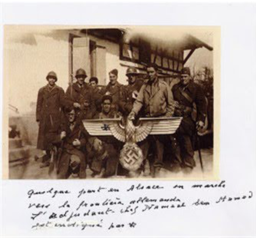دوّن نجيب مذكّرات والده في كتاب يحمل عنوان شمس على منحدرات الجحيم، فعل ذلك "حتى لا ننسى" وفق قوله. ينتمي جميع الجنود الذي يظهرون في الصورة إلى الفوج الرابع من المشاة التونسيين (4ᵉ RTT)، إحدى أكثر الوحدات تكريمًا في الجيش الفرنسي خلال الحربين العالميتين. وبعد يومين من السيطرة على بيشفيلر، غدا أحمد العابد أيضًا أول جندي من الجيش الفرنسي تطأ قدمه الأراضي الألمانية.