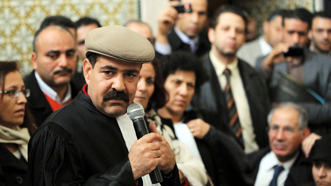 خلال مسيرة المحامين يوم 14 جانفي 2011 التي انطلقت من مقرّ عمادة المحامين الكائن بشارع باب بنات بالعاصمة باتجاه شلرع الحبيب بورقيبة