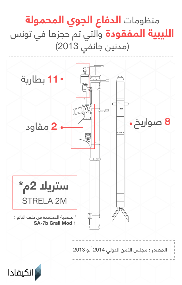 منذ اندلاع الحرب الليبية بين القوات النظامية والفصائل المتمرّدة مطلع 2011، سقطت منظومات الدفاع الجوّي المحمولة بين أيدي مجموعات من المقاتلين من شتّى التوجّهات الفكرية والايديولوجية (كتائب الثوار بشتّى تفرّعاتها) لينتقل بعضها بعد ذلك إلى أيدي المهرّبين والتجّار والمتشدّدين ما شكّل خطرا على دول الجوار في المنطقة وفي مقدّمتها تونس.