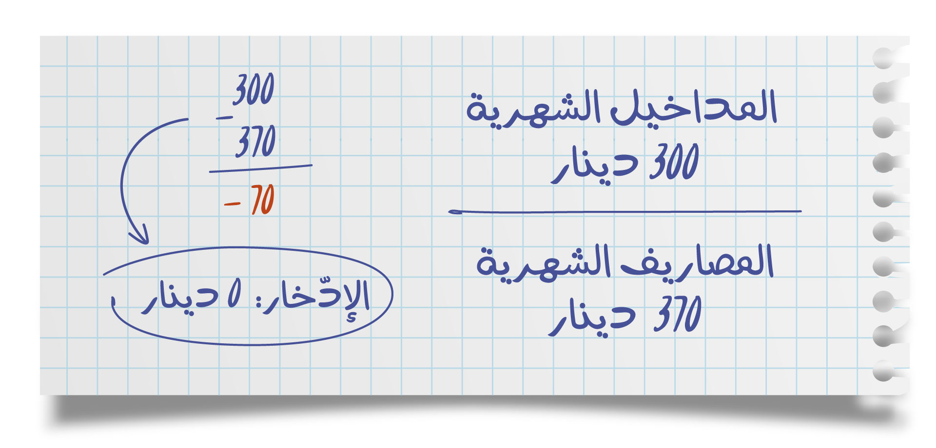 فيما يلي لمحة عن مداخيلها ومصاريفها الشهرية: