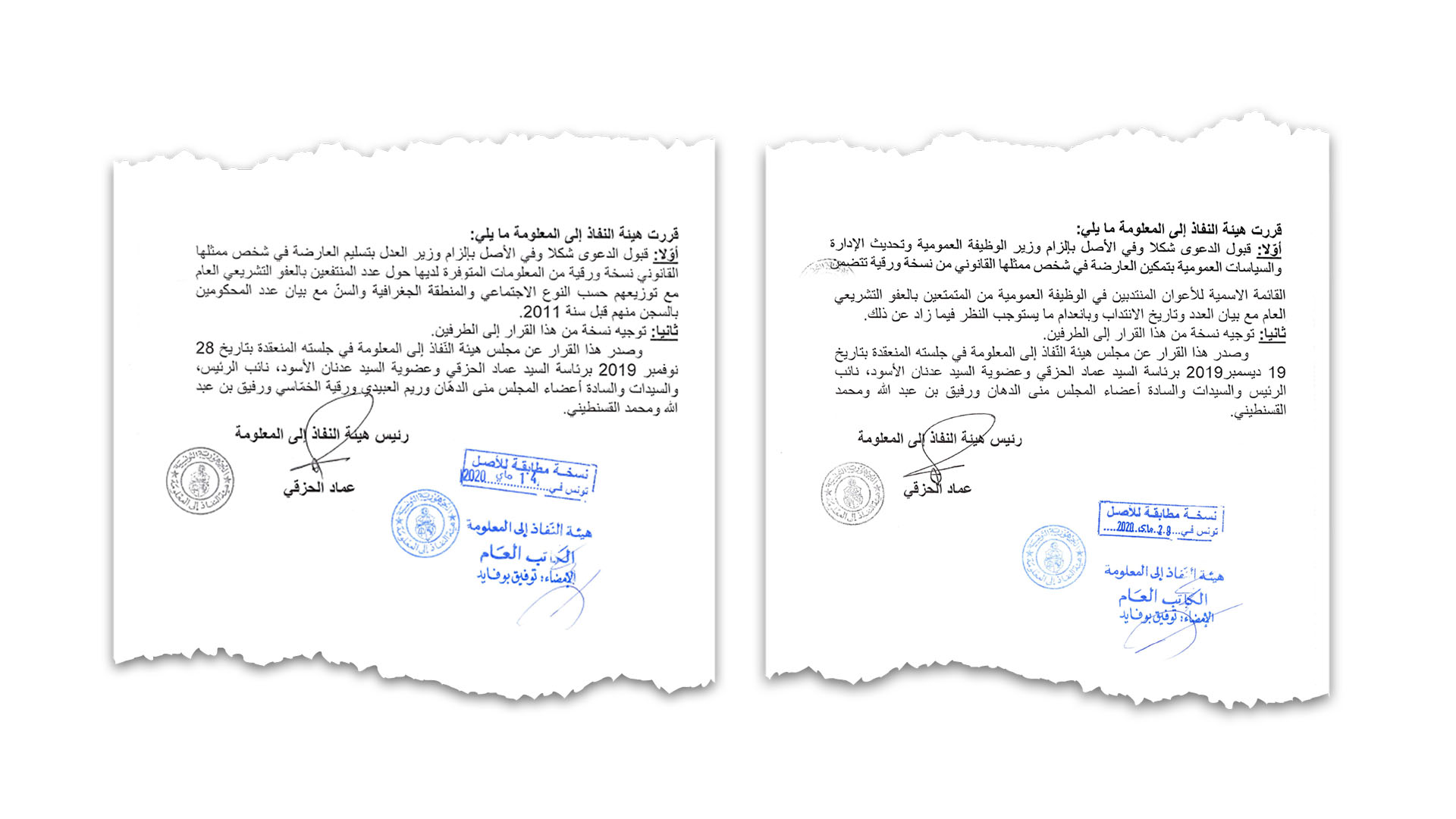 "وزارة الوظيفة العمومية ليست الوزارة الوحيدة التي لا تمتثل إلى قرارات الهيئة. كل من وزارات الصناعة والطاقة والمناجم والشؤون المحلية، وولاية مدنين وبلدية سيدي ثابت تعد من بين الهياكل التي لا تلتزم بقرارات الهيئة". عدنان الاسود، نائب رئيس هيئة النّفاذ إلى المعلومة.