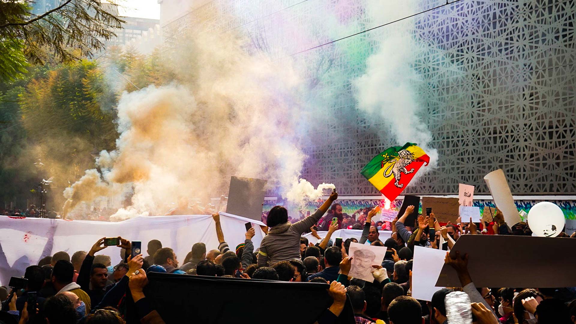 جانب من المظاهرات التي جابت العاصمة احتجاجا على الأوضاع الإقتصاديّة والإجتماعية مطلع السّنة. شارع باريس يوم  23 جانفي 2021. صورة: عيسى زيادية