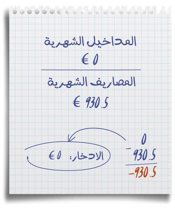 فيما يلي تفاصيل مداخيله ومصاريفه الشهرية: