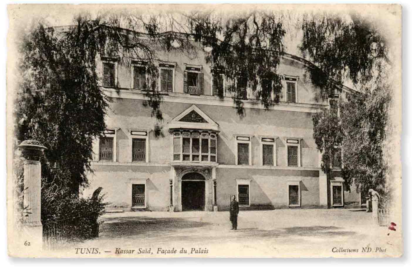 نرى خلف روسطان إسكمْلة هي على الأرجح التي وُقّعت فوقها معاهدة 12 ماي 1881. ولاحقا، سيستخدم هذه الطاولة نفسها الرئيس الحبيب بورقيبة للمصادقة على تأميم الأراضي في يوم 12 ماي آخر من عام 1964.