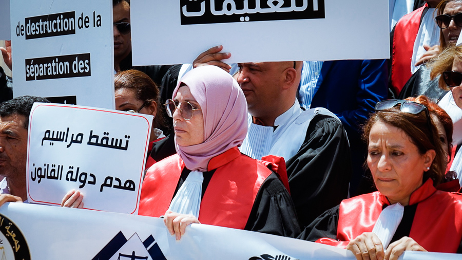 إحتجاج القضاة والقاضيات يوم 23 جوان 2022 أمام قصر العدالة بتونس العاصمة بعد اسبوعين من إعلان الرئيس قيس سعيد إعفاء 57 قاضيا وقاضية من مهامهم. صور ة لـ.عيسى زيادية.