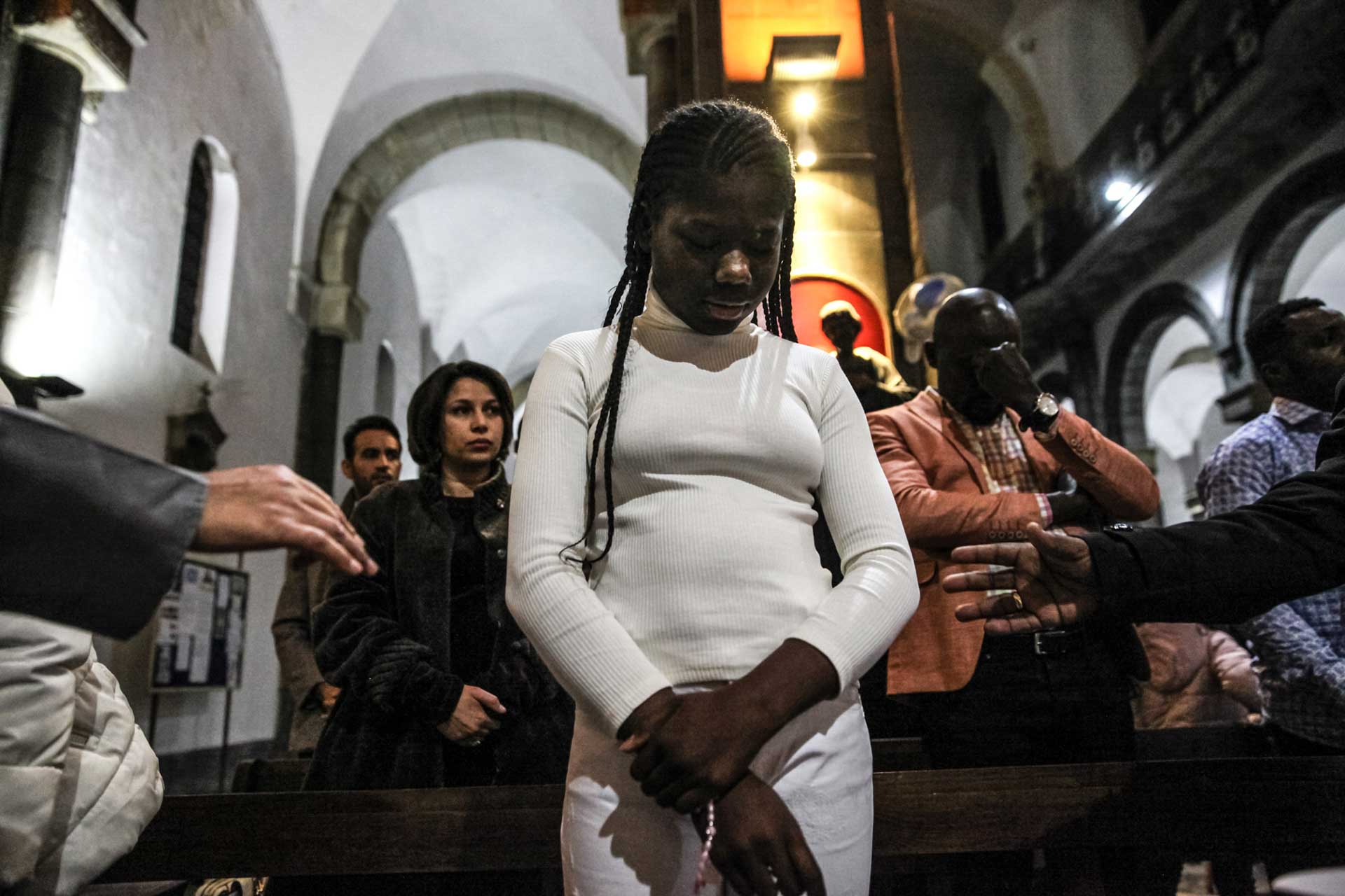 إليزيه (يسار) في المترو متجها إلى عمله في تونس العاصمة. هو رجل إيفواري في وضع لانظامي ويعيش في أحد الأحياء بأريانة. بعد تصريحات الرئيس قيس سعيد قدم لدى سفارة بلاده طلبا للعودة الطوعية. أريانة (تونس الكبرى)،