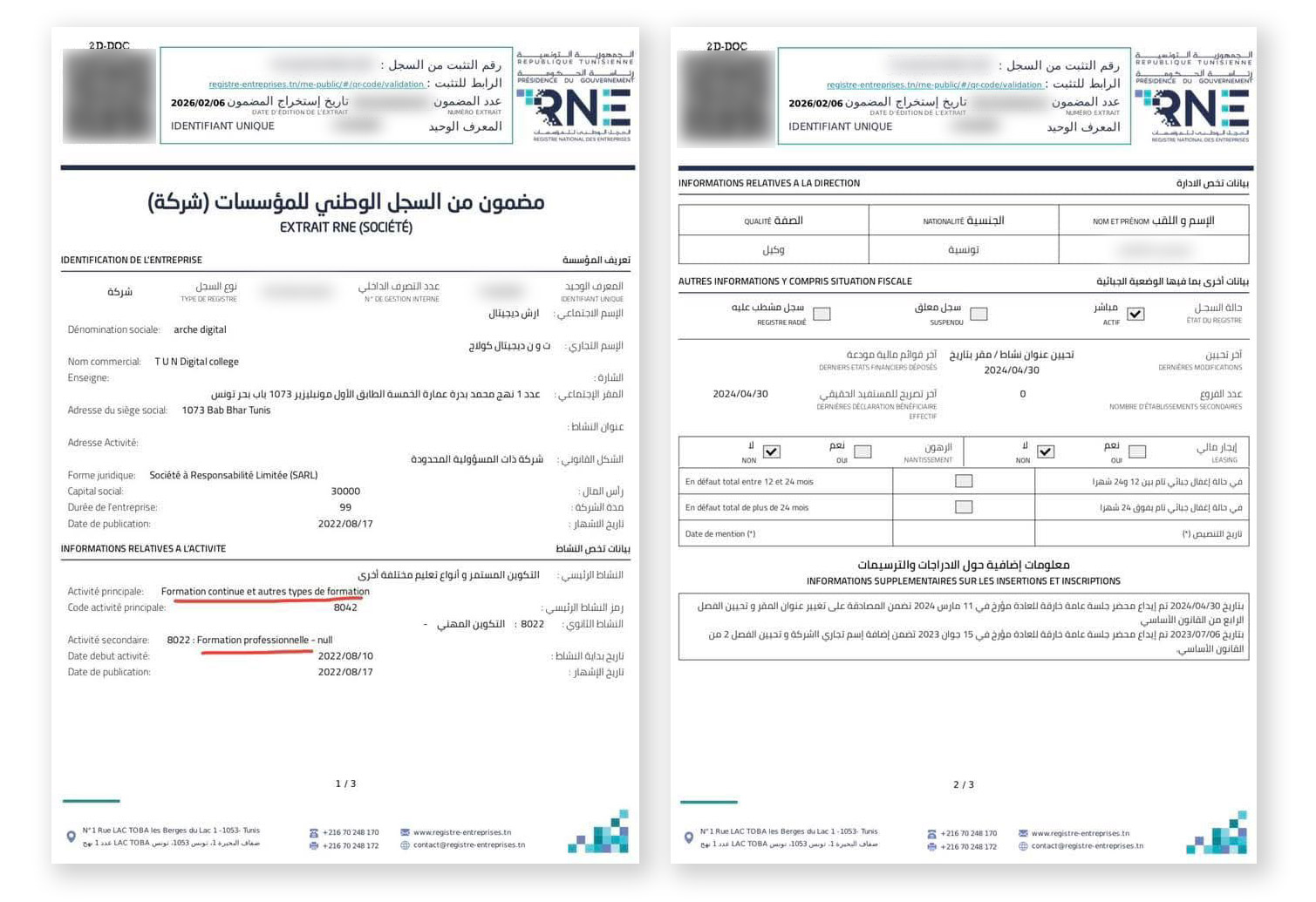 خلال الزيارة، تلقّت الولية تأكيدات من إدارة المؤسسة مفادها أن للطلبة·ات الملتحقين·ات في المؤسسة التخرج بعد خمس سنوات بشهادة في المجال الرقمي، وأن البرنامج يقوم على ثلاثة أيام دراسة حضوريا ويومي تدريب داخل شركات وبنوك لاكتساب الخبرة المهنية.