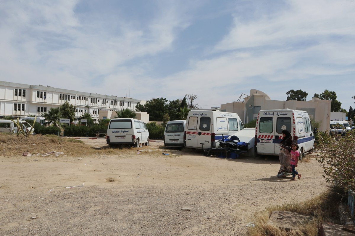 مربض سيارات الاسعاف بالمستشفى الجهوي بالقصرين. بعض السيارات خارج الخدمة.