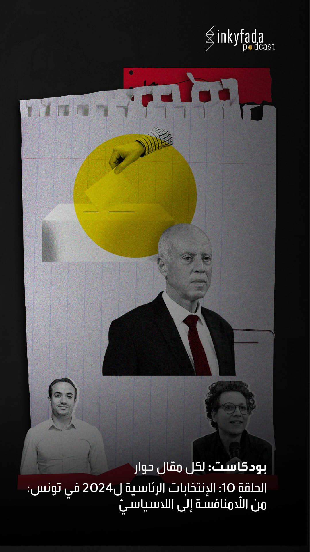 إنكفاضة بودكاست هي أول منصة رقمية من نوعها مخصصة كليا للإنتاجات الأصلية للبودكاست في تونس. أطلقها موقع إنكفاضة بالتعاون مع إنكيلاب مخبر البحث الرقمي والتطوير التابع له. في خضم العدد الهائل والمتزايد لإنتاجات البودكاست في العالم (وهي إنتاجات صوتية أصلية متوفرة عند الطلب)، انضمت إنكفاضة للمغامرة سنة 2017 حين انكبّ الفريق على إنتاج أول وثائقي سمعي تونسي يتمثل في غوص غير مسبوق في الكامور : اعتصام في قلب الصحراء. منذ ذلك الحين، ضاعفت إنكفاضة بودكاست إنتاجاتها من وثائقيات وبرامج و مقالات مسموعة مُدمجة على خلفية موسيقية، وقصص أخرى تتناول مواضيع شتى متعلقة بالإشكاليات الراهنة والحالية، في سبيل توفير انغماس أعمق وتجربة بديلة. بالإضافة إلى خصوصية الإنتاجات الأصلية القائمة حصراً على وسائط سمعية، تتبنّى إنكفاضة بودكاست مبادئ وقيم الموقع الأم inkyfada.com المتمثلة في إصدارات ملتزمة ودقيقة وذات جمالية وجودة عاليتيْن. إلى جانب الفريق الدائم، تتعاون إنكفاضة بودكاست عن كثب مع صحفيين وصحفيات وفنانين وفنانات ومصممين ومصممات وموسيقيين وموسيقيات ومختلف صانعي وصانعات المحتوى، قصد تقديم إصدارات متنوعة وفي سبيل دعم الوسط الفني. يكمن الفرق بين البودكاست وبين المحتويات المُذاعة على قنوات الراديو التقليدية خاصة في ما تتخلله من عمل جسيم على الإخراج والمونتاج الأشبه بالتقنيات السينماتوغرافية. هذا بالإضافة لكونها موجهة للاستعمال على شبكة الإنترنت ومتوفرة للتحميل المجاني والاستماع عند الطلب. إنتاجات إنكفاضة بودكاست تقدم للمرة الأولى كذلك ترجمات تحتيّة متوفرة باللغات الثلاث العربية والفرنسية والإنجليزية لكل المحتويات السمعية المحكيّة أغلبها باللهجة التونسية، أو باللغة التي تـ·يخيرها المتدخلة أو المتدخّل.
