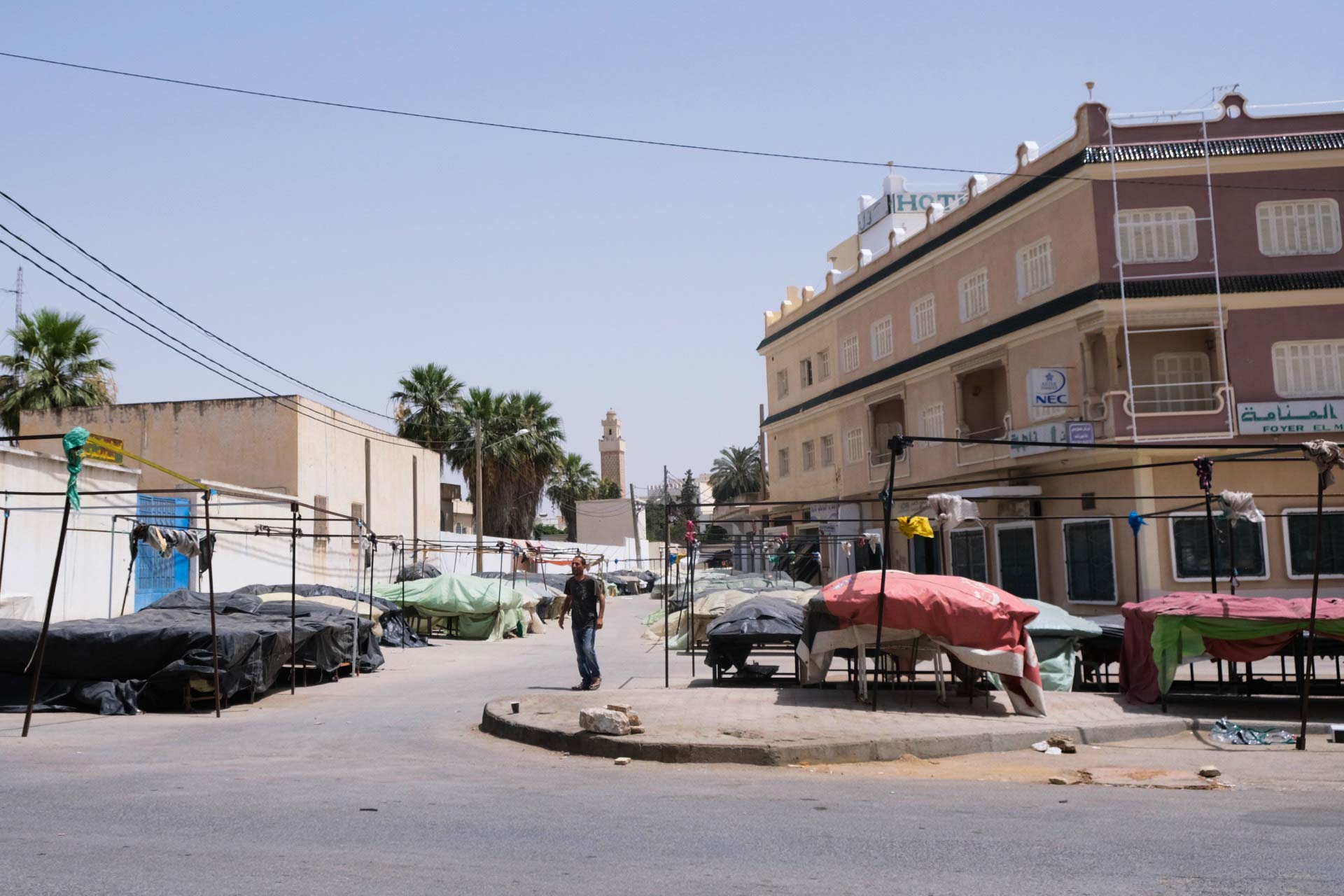 Since June 21, the Tunisian army has assisted the health care workers in Kairouan. Several tents have been set up, which now adjoin the field hospital from which they are separated by barbed wire. Here, on the outskirts of the city, a stream of ambulances steadily brings in new patients. "It's the Ibn El-Jazzar hospital that sends us the most urgent cases", one soldier says.
