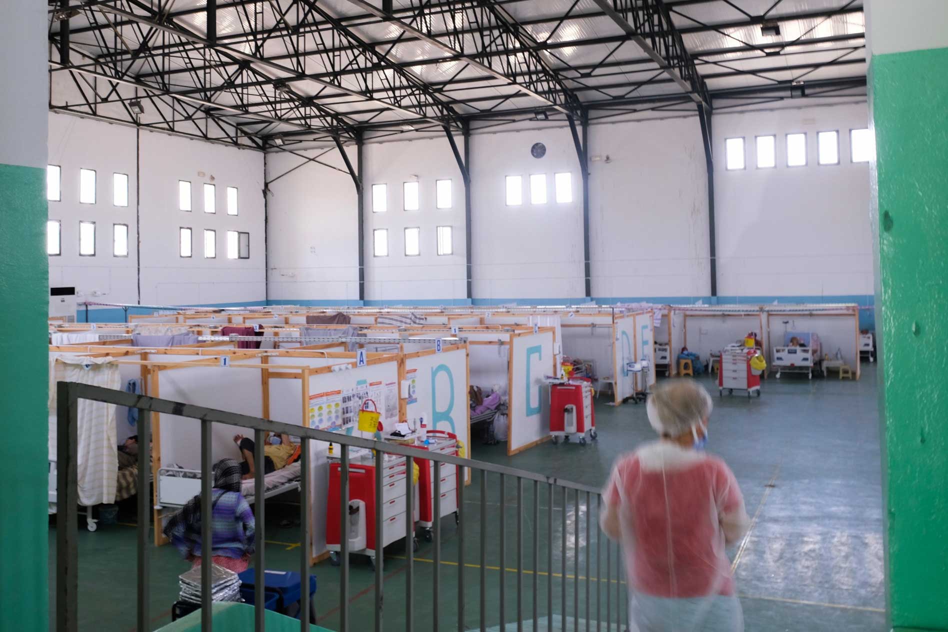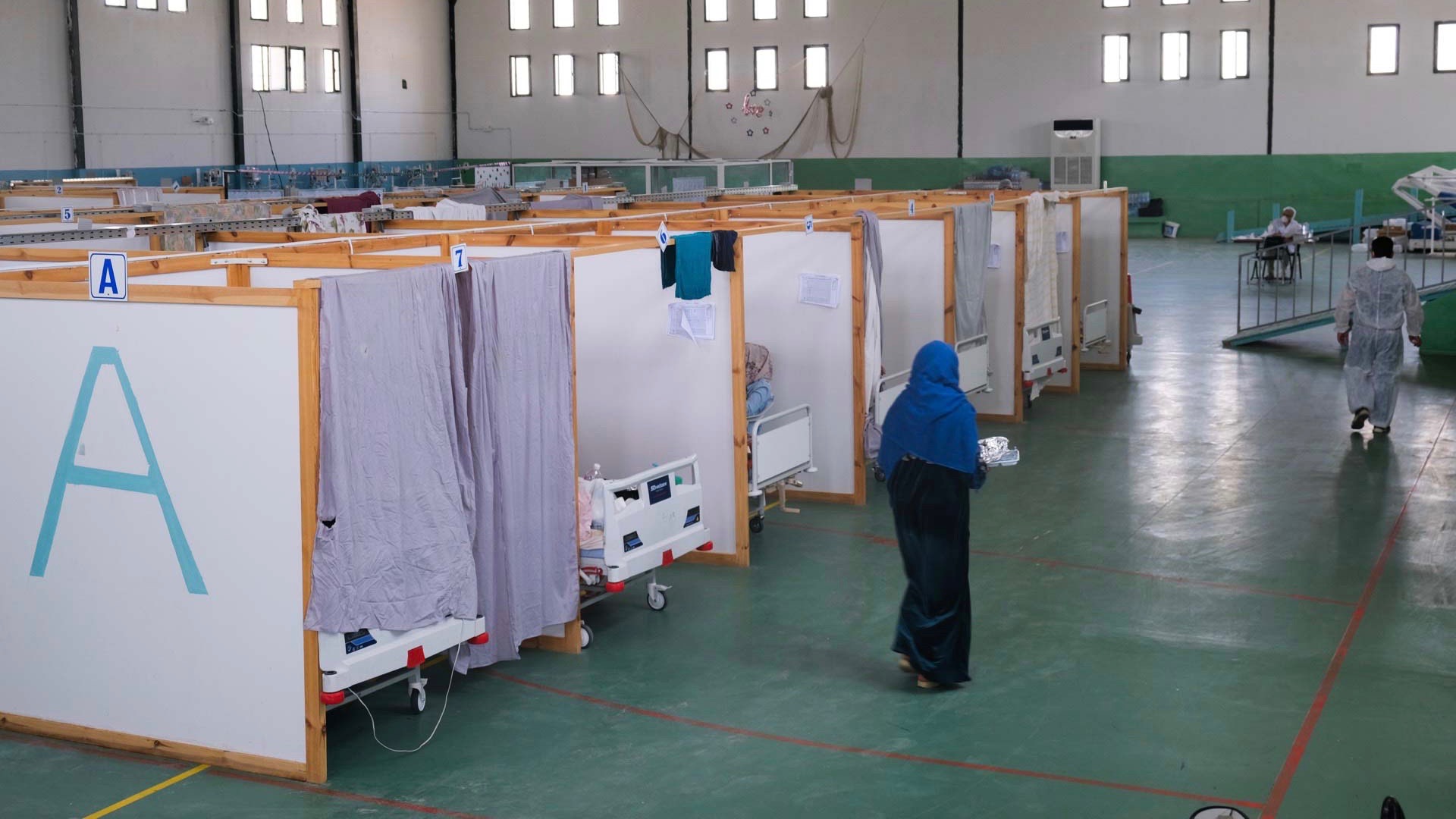 Inside the sports hall of the Hamda Laouani Stadium, dozens of beds have been set up to cope with the influx of patients.
