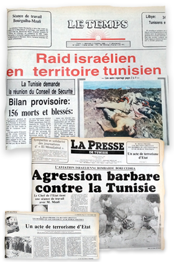 Described in newspapers the following day as a "barbaric raid", "state terrorism" or "Nazism", the bombing was initially covered up by Tunisian radio and television.