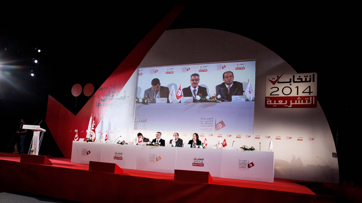 Point presse de l’ISIE en milieu d’après-midi dimanche 26 octobre. Crédit : Kais Zriba
