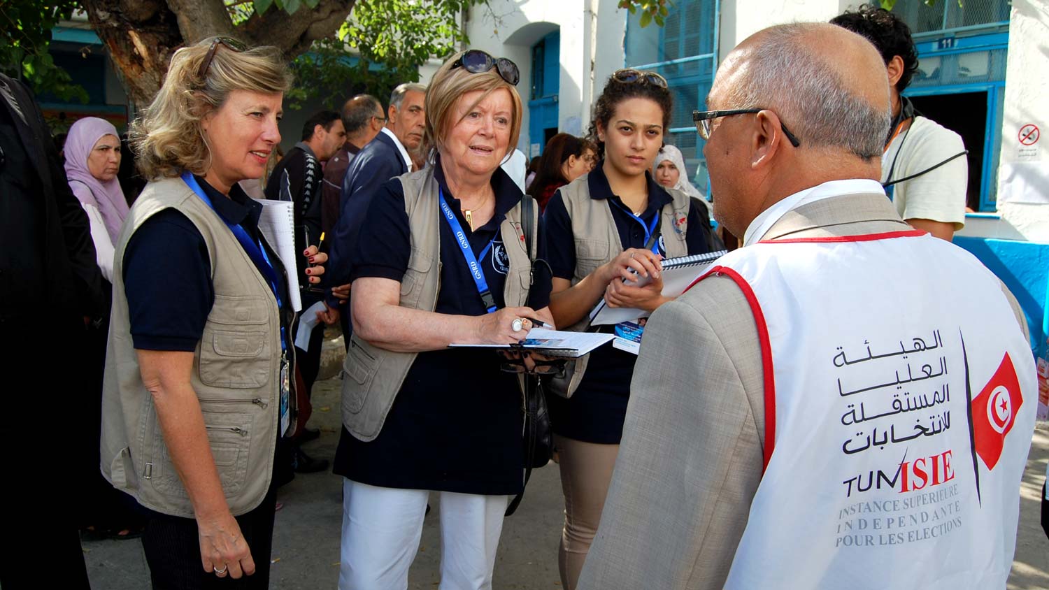 de marseille, au centre ville de Tunis, discute avec des observateurs internationaux.