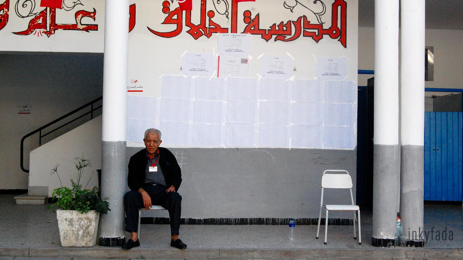 Un électeur attend son tour, ce matin dans le bureau de vote de la rue de Marseille, au centre ville de Tunis. Crédit : Sana Sbouai