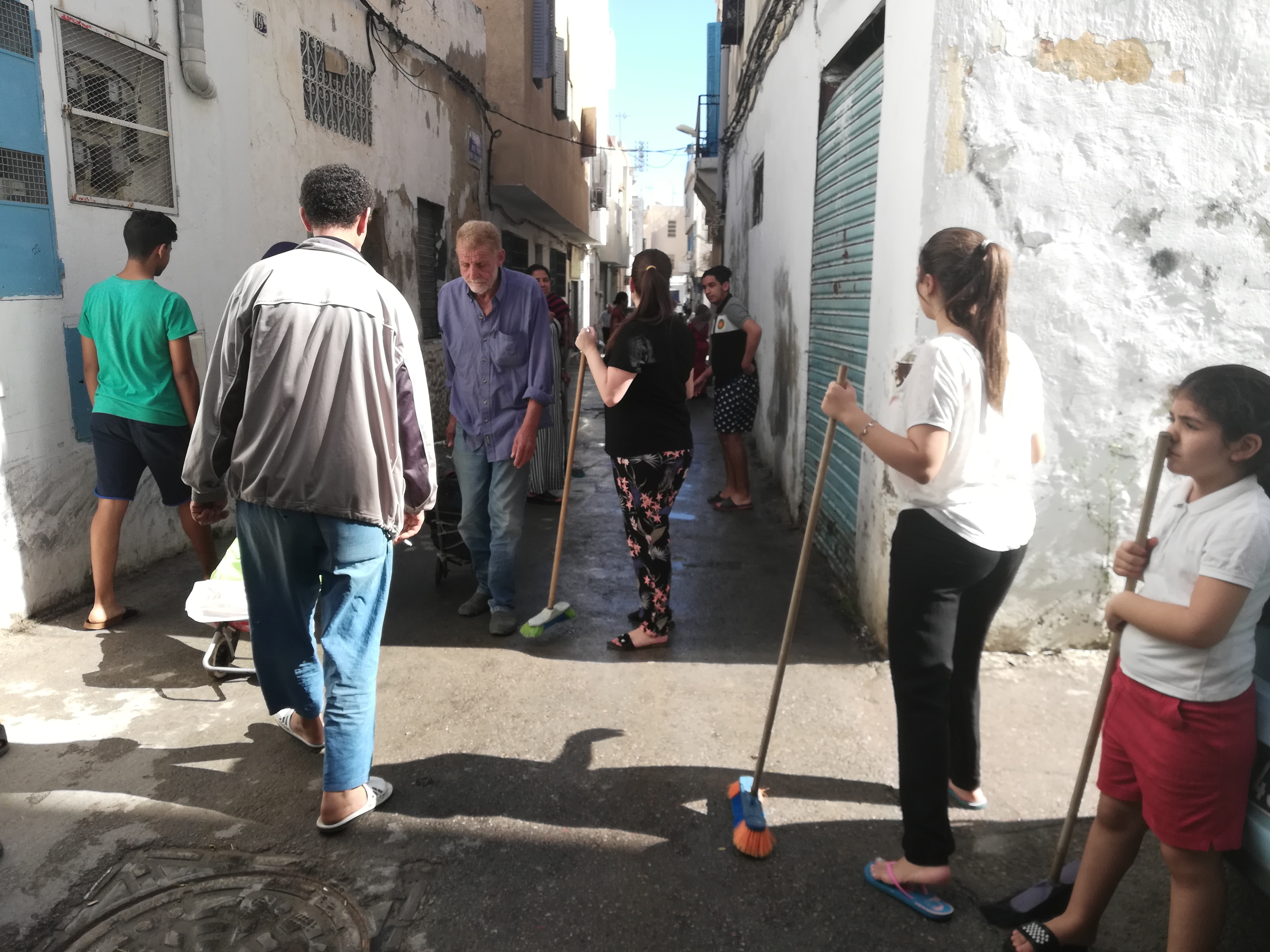 Ce père de famille est né et a grandi dans le quartier d’El Hafsia, à Tunis. Dès le lendemain du lancement de la campagne sur les réseaux sociaux, Hatem a proposé à ses voisin·es d’y participer. Il a initié la collecte d’argent, a pris contact avec la municipalité et a créé un groupe facebook pour la logistique. Toute la journée de dimanche, les habitant·es discutent et s’organisent. Ils et elles assurent que ce n’est qu’un début.