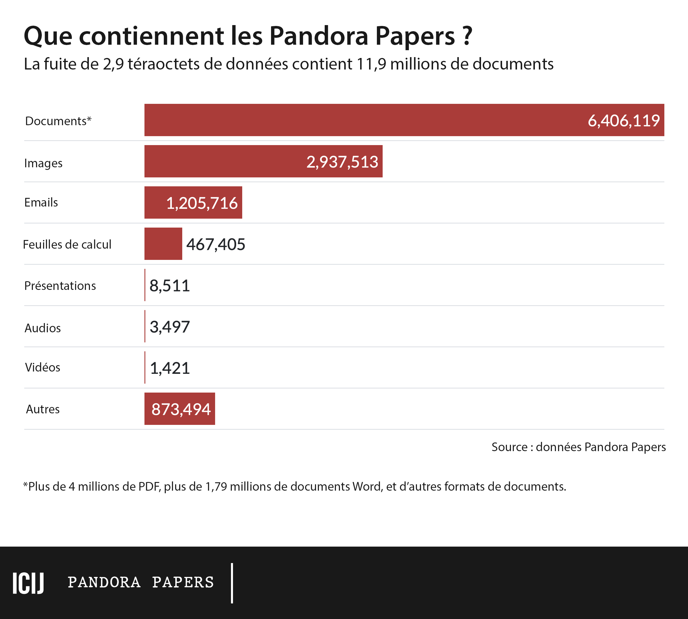 Les 2,94 téraoctets de données fuitées auxquelles a eu accès ICIJ ont été partagées avec des partenaires médiatiques du monde entier, sous divers formats : documents texte, images, courriels, feuilles de calcul, etc.