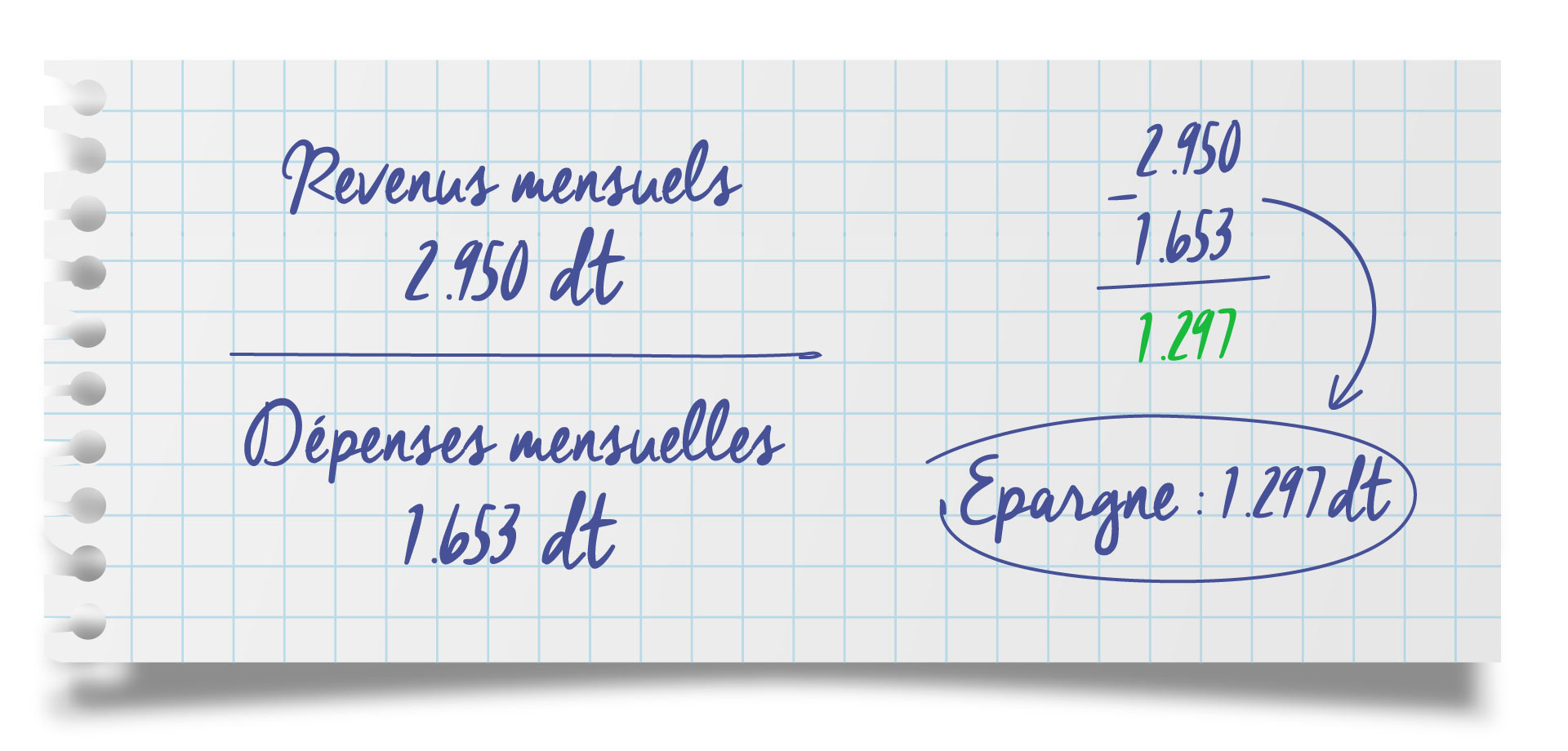 Voici un aperçu de ses revenus et dépenses mensuelles :