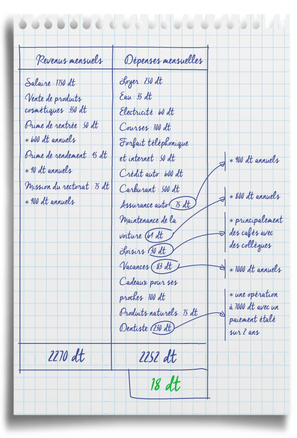 Voici le détail de ses entrées et sorties d’argent mensuelles