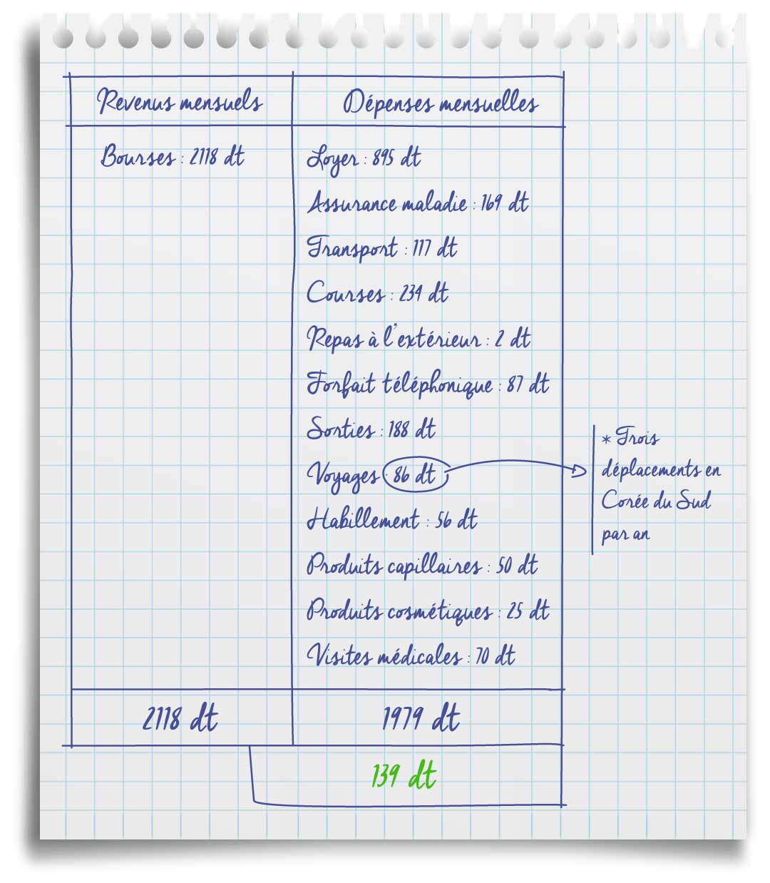 "Je dépends de cette bourse, et les administrations locales sont promptes à te pénaliser en cas de retard de paiement. Ce qui fait que je suis constamment à l'affût quant à mes entrées et sorties d’argent. ”