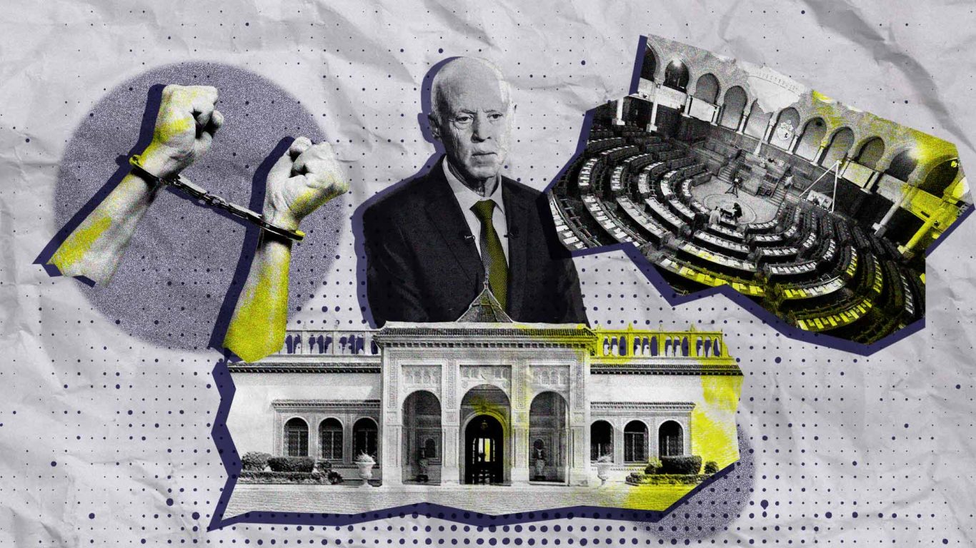 En effet, dans les mois qui suivent le coup d’État, le président promulgue six décrets, mettant fin entre autres, aux fonctions des parlementaires et des membres de son gouvernement. D’autre part, la Constitution instaurée en 2022 instaure un “régime présidentialiste" et renforce les pouvoirs du président, selon Salsabil Klibi, spécialiste du droit constitutionnel, interrogée par inkyfada en 2022.