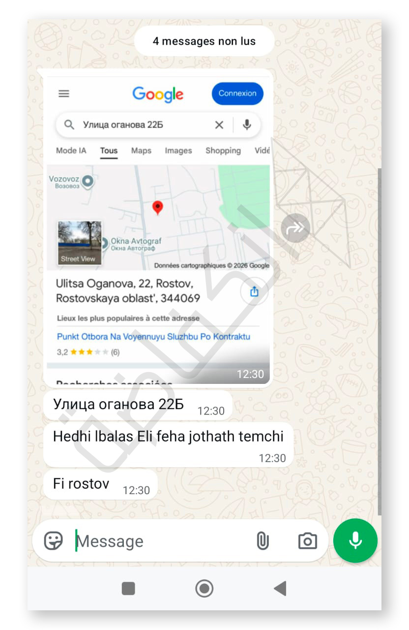 Message de l'avocat russe d'Aymen à sa famille, transmettant une adresse à Rostov-on-Don où se trouveraient les corps de plusieurs Tunisiens.